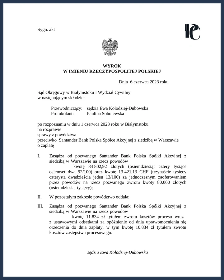 Minęło tylko 2,5 miesiąca, a my mamy wyrok I instancji!