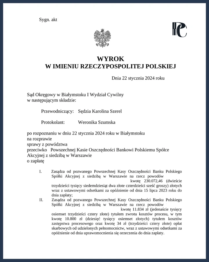 Radca Prawny Białystok: wygrana sprawa frankowa z Bankiem PKO BP S.A.