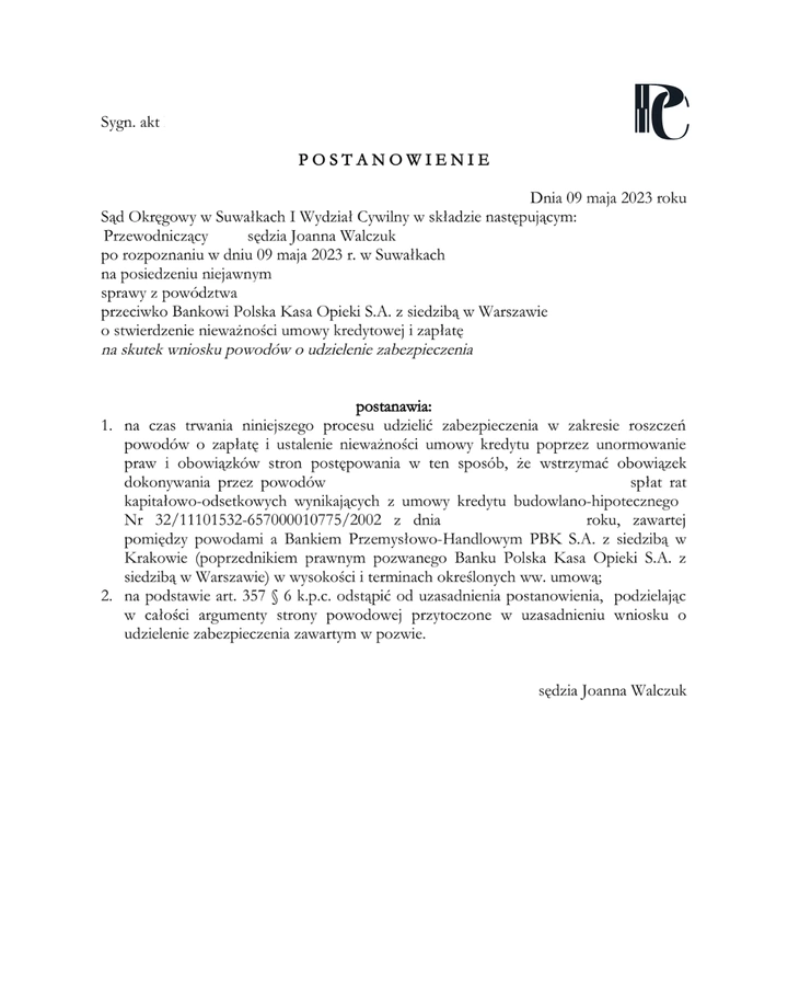 Sąd Okręgowy w Suwałkach udzielił zabezpieczenia w sprawie frankowej! Kredytobiorcy przez cały czas trwania procesu nie muszą spłacać rat kredytu.